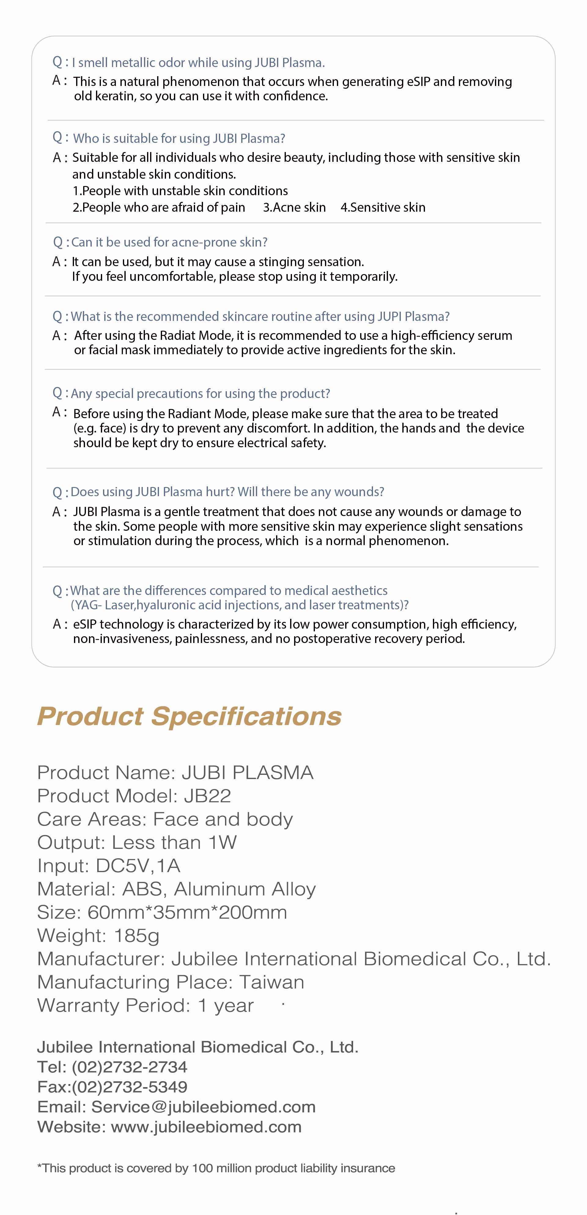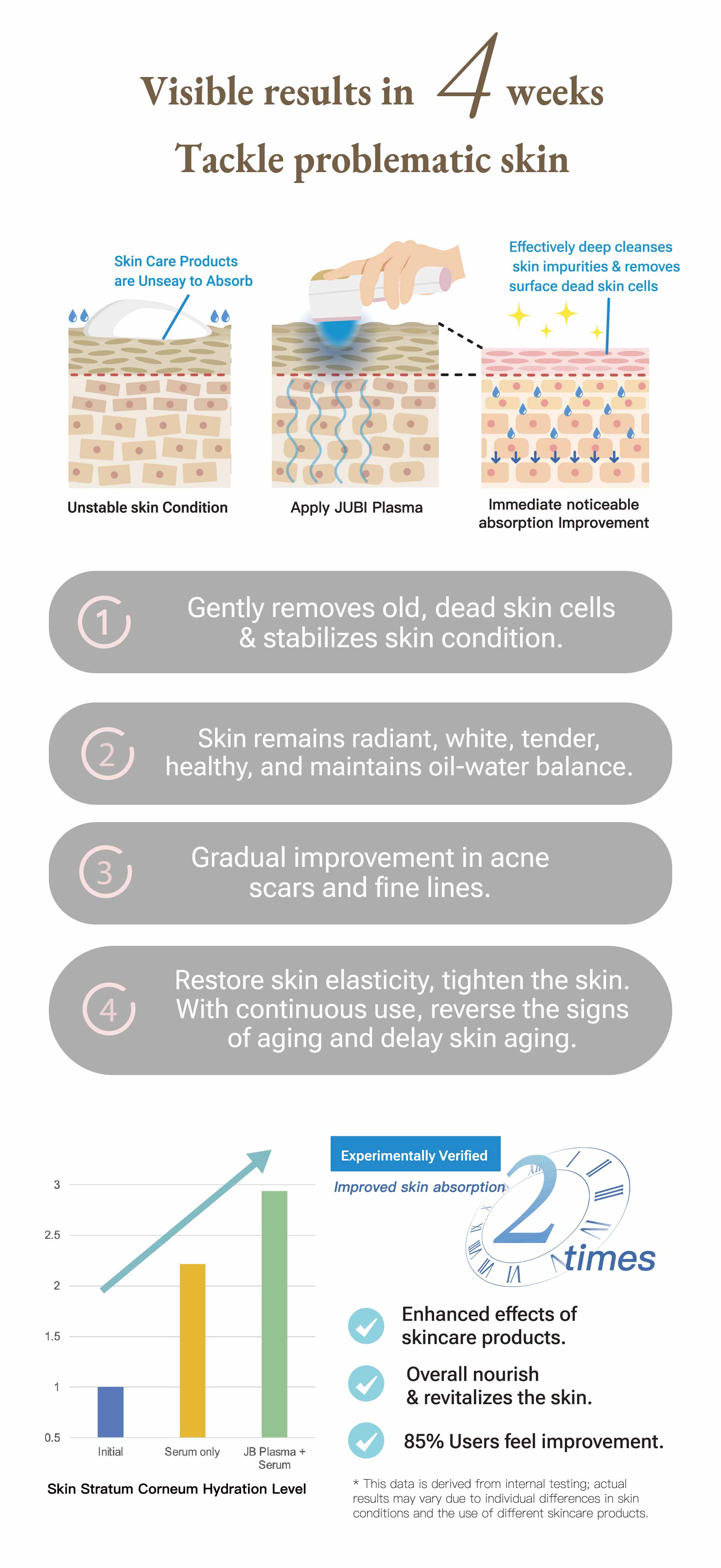 .Safe for all skin types, JUBI Plasma delivers visible, long-lasting improvements in clarity, smoothness, and vitality.